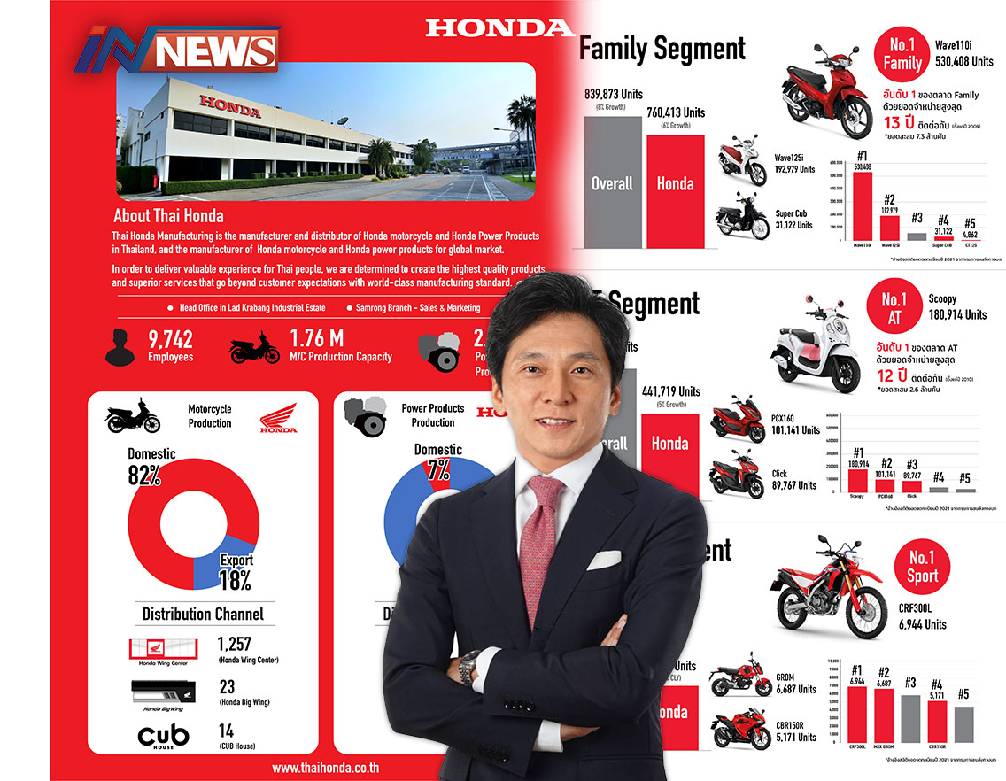 กรุงเทพฯ-รถจักรยานยนต์ฮอนด้า ครองยอดขายอันดับ 1 ในไทย 33 ปีซ้อน ด้วยตัวเลข 1.236 ล้านคัน คว้ายอดจำหน่ายสูงสุดทั้งรถครอบค...