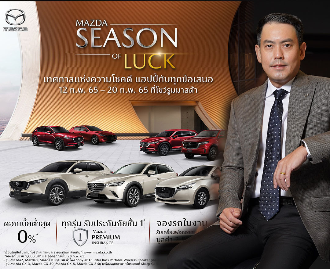กรุงเทพฯ-อัดแคมเปญ MAZDA SEASON OF LUCK เทศกาลรับโชคกรุงเทพฯ ประเทศไทย, วันที่ 7 กุมภาพันธ์ 2565 – มาสด้าร้อนแรงปร...