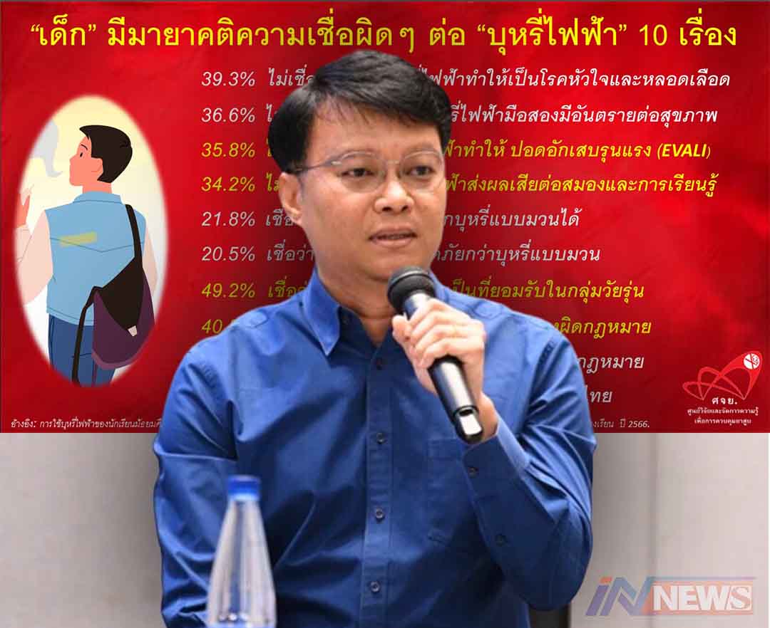 ห่วงเด็กไทยมีความเชื่อผิดๆ'บุหรี่ไฟฟ้า' บิดเบือนความจริง'บุหรี่ไฟฟ้าปลอดภัย'