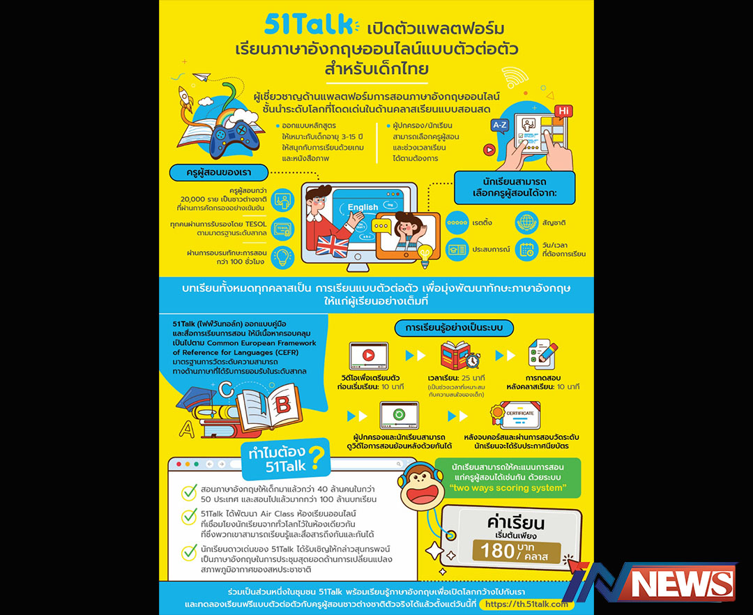 51Talk เปิดตัวแพลตฟอร์มเรียนอังกฤษ ออนไลน์แบบตัวต่อตัวสำหรับเด็กไทย