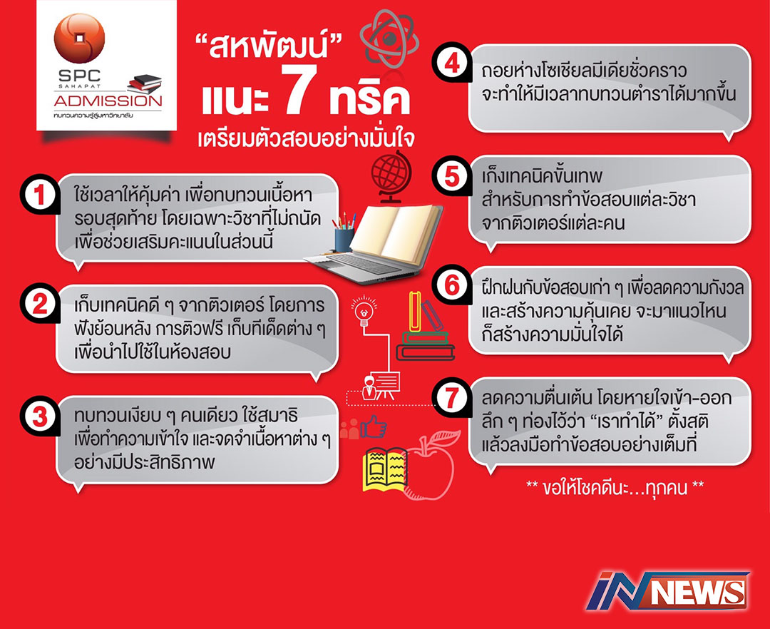 'สหพัฒน์แอดมิชชั่น'แนะ7ทริคเตรียมตัว สอบให้ได้คะแนนปังๆ