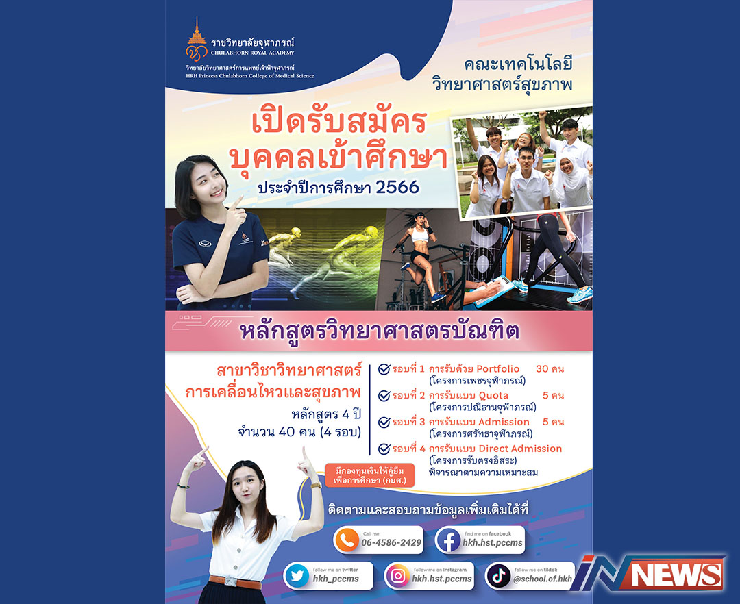 ราชวิทยาลัยจุฬาภรณ์เปิดรับนักศึกษาใหม่ 'วิทยาศาสตร์การเคลื่อนไหว-สุขภาพ'