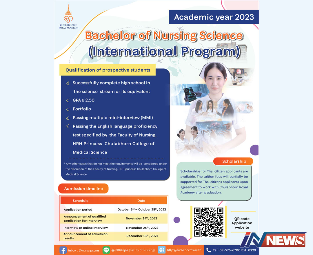 ราชวิทยาลัยจุฬาภรณ์สมัครนักศึกษาป.ตรี หลักสูตรพยาบาลศาสตรบัณฑิต