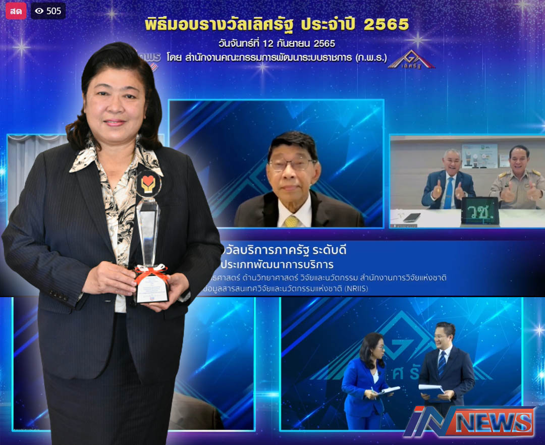 กรุงเทพฯ-วช. ภาคภูมิใจระบบ NRIIS รับรางวัลแห่งเกียรติยศ “รางวัลเลิศรัฐ ประจำปี 2565” ประเภทพัฒนาการบริการ ระ...