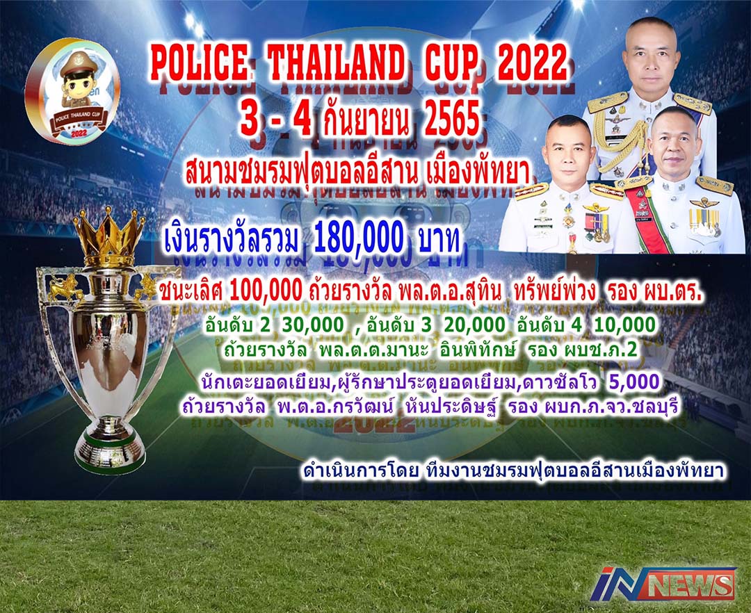 ชลบุรี-เริ่มแล้ว! โม่แข้งชิงเงินแสน PTC 2022 มี 16 ทีมแข้งโปลิศร่วมชิงเงินแสน ฟุตบอล 9 คน POLICE THAILAND CUP 2022