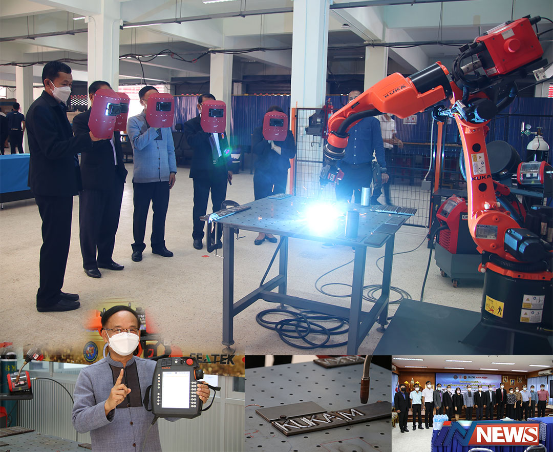 ครู-วิชาชีพช่างเชื่อมร่วมเทคนิคสารคาม อบรมหุ่นยนต์เชื่อมอุตฯ6Dด้วยCMT