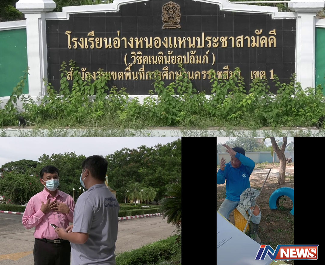 นครราชสีมา-โชเชียลแห่ชื่นชม ผอ.รร.โคราช ห้องไม่อยู่ แต่มาเก็บกวาดทำความสะอาดลานหญ้าโรงเรียนกลางแดด