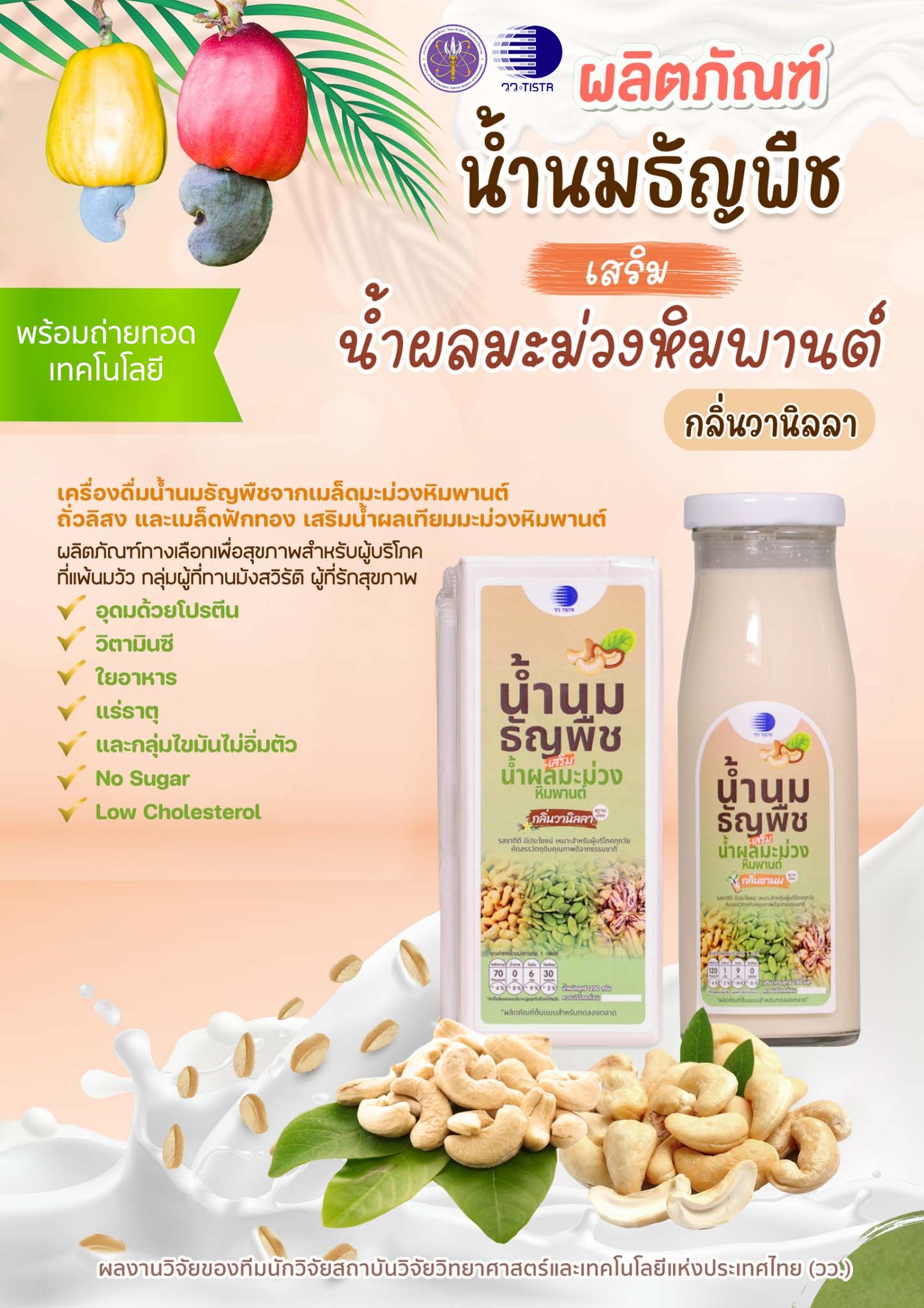 วว.เดินหน้าพัฒนาผลิตภัณฑ์น้ำนมธัญพืช เสริมน้ำผลมะม่วงหิมพานต์