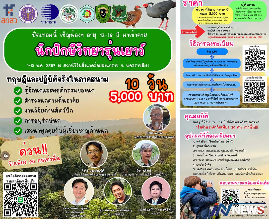 วว.โดยสถานีวิจัยฯสะแกราช-พันธมิตรจัด ช่วงปิดเทอมผลิต'นักปักษีวิทยารุ่นเยาว์1'