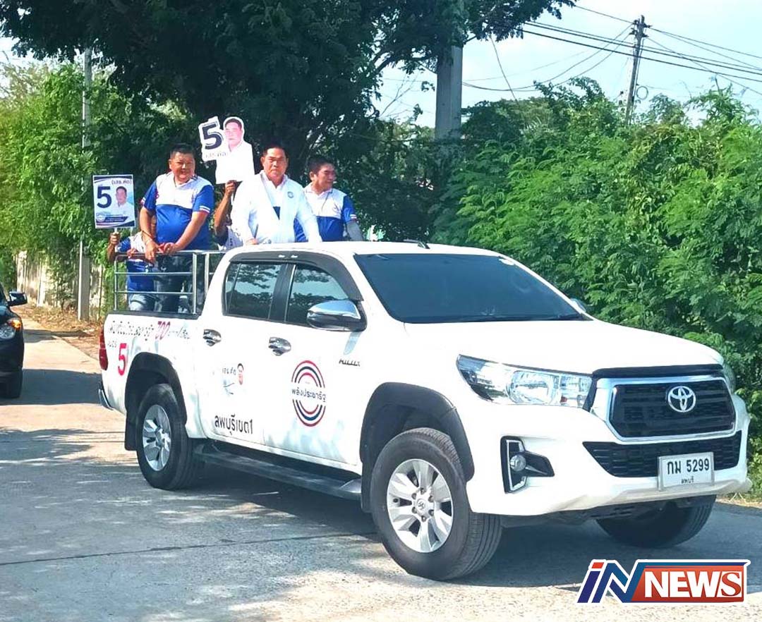 ‘เสธคัด’พรรคพลังประชารัฐยังไม่หยุดใช้รถแห่เชิญชวนให้ออกมาเลือกตั้งในเขต1