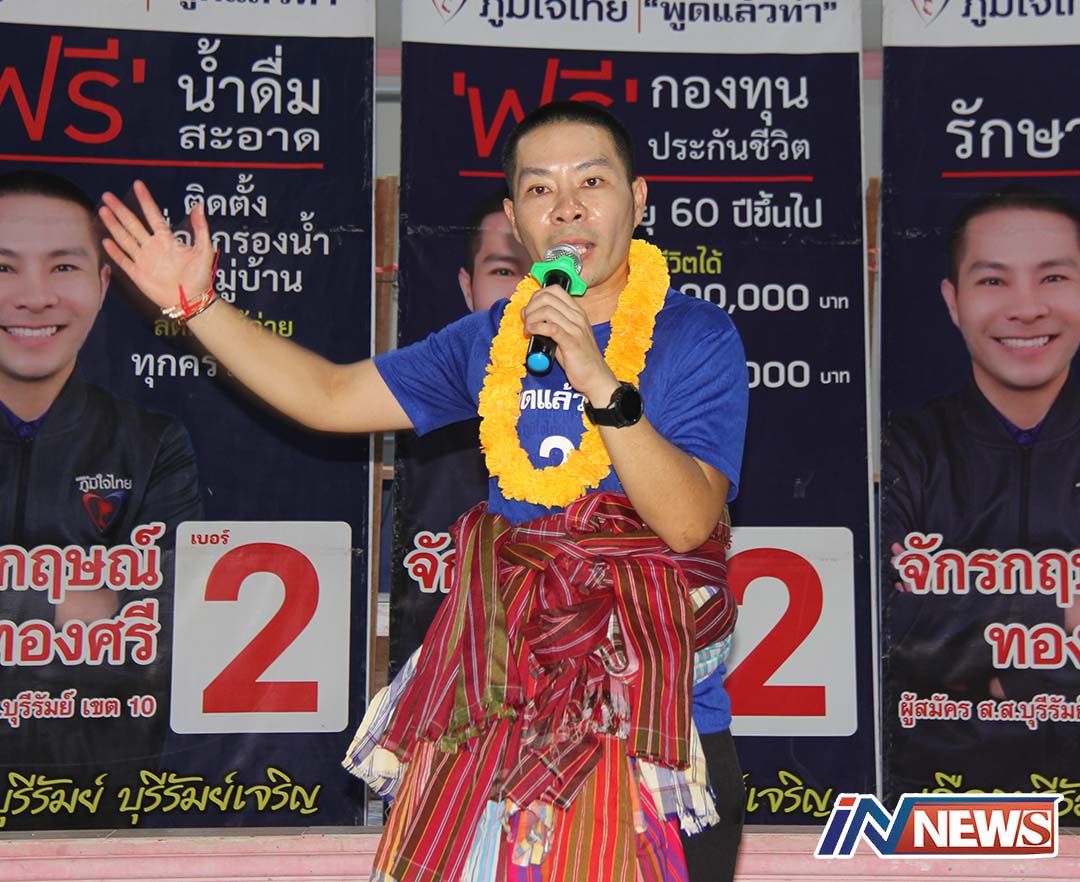 ‘จักรกฤษณ์’บุรีรัมย์มั่นใจปักธงได้อีกสมัยปราศรัยชูนโยบายพรรคภูมิใจไทย