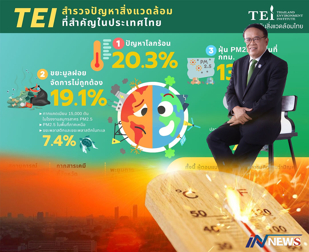 'สถาบันสิ่งแวดล้อมไทย'เผยถึงผลสำรวจ ชี้ปัญหาสิ่งแวดล้อมไทย'โลกร้อนอันดับ1'