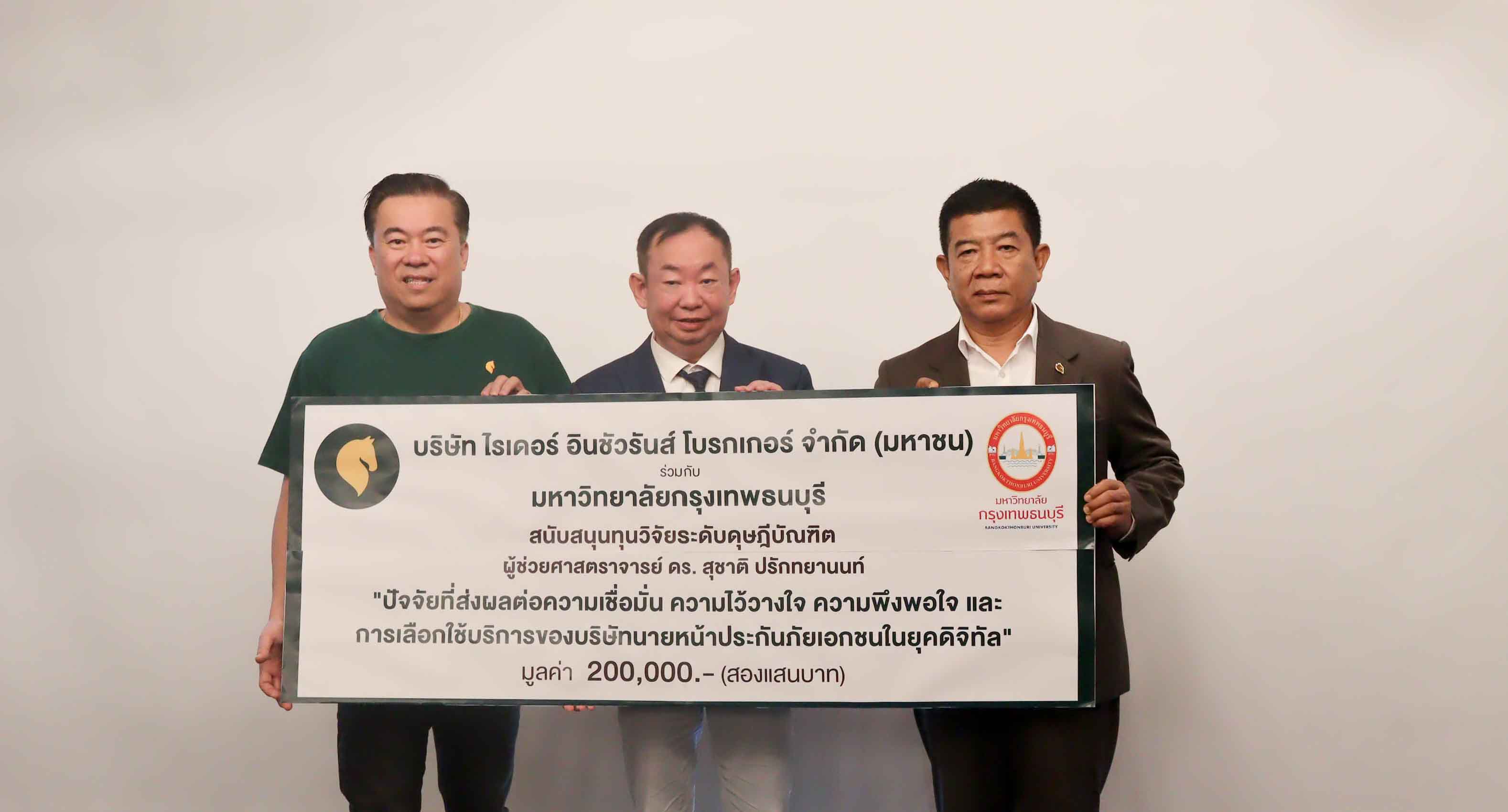 ไรเดอร์อินชัวรันส์ฯจับมือม.กรุงเทพธนบุรี มอบทุนวิจัย2แสนพัฒนาประกันภัย