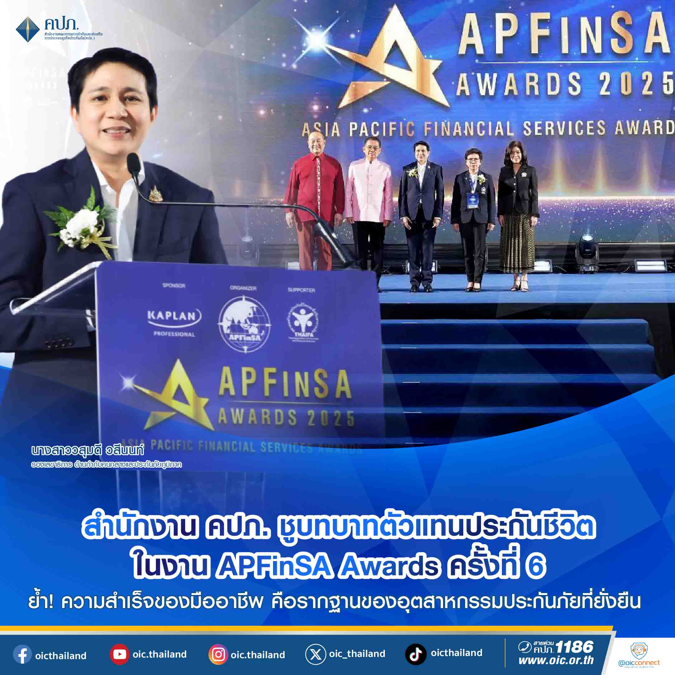 สนง.คปภ.โชว์บทบาทตัวแทนประกันชีวิต ในงานAPFinSA Awardsครั้งที่6