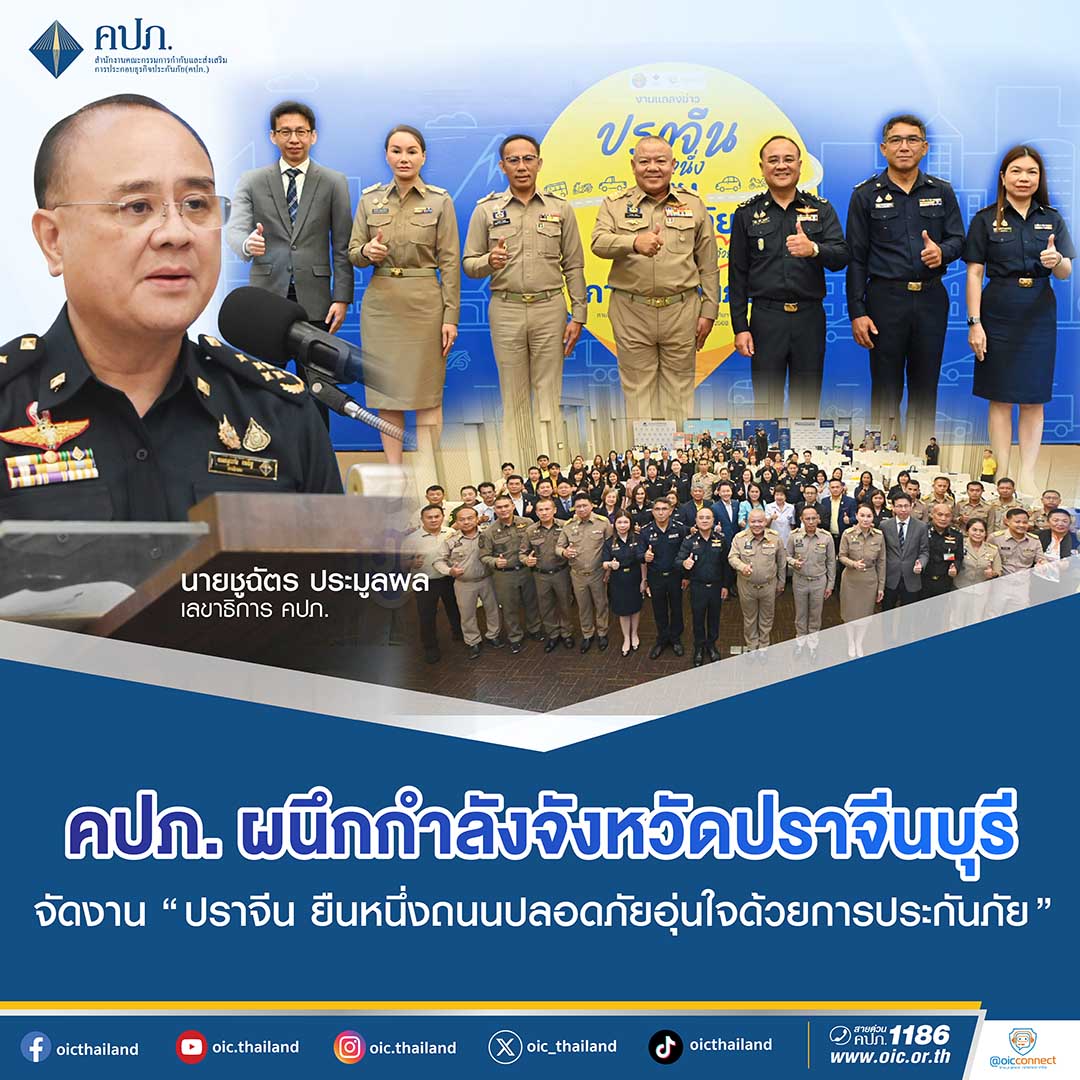 ปราจีนบุรี-คปภ. ผนึกกำลังจังหวัดปราจีนบุรี ภาคธุรกิจประกันภัย ทีดีอาร์ไอ จัดงาน“ปราจีน ยืนหนึ่งถนนปลอดภัย อุ่นใจด้...