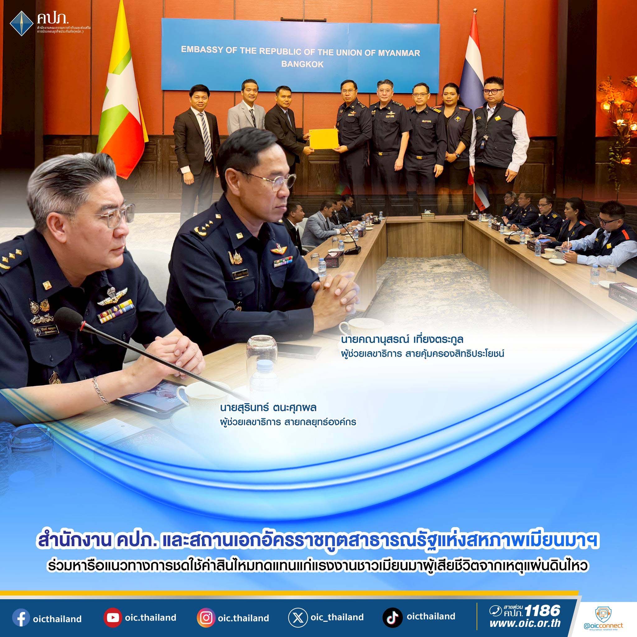 สนง.คปภ.ร่วมสถานทูตพม่าถกแนวทาง ชดใช้ค่าสินไหมแก่แรงงานตุแผ่นดินไหว