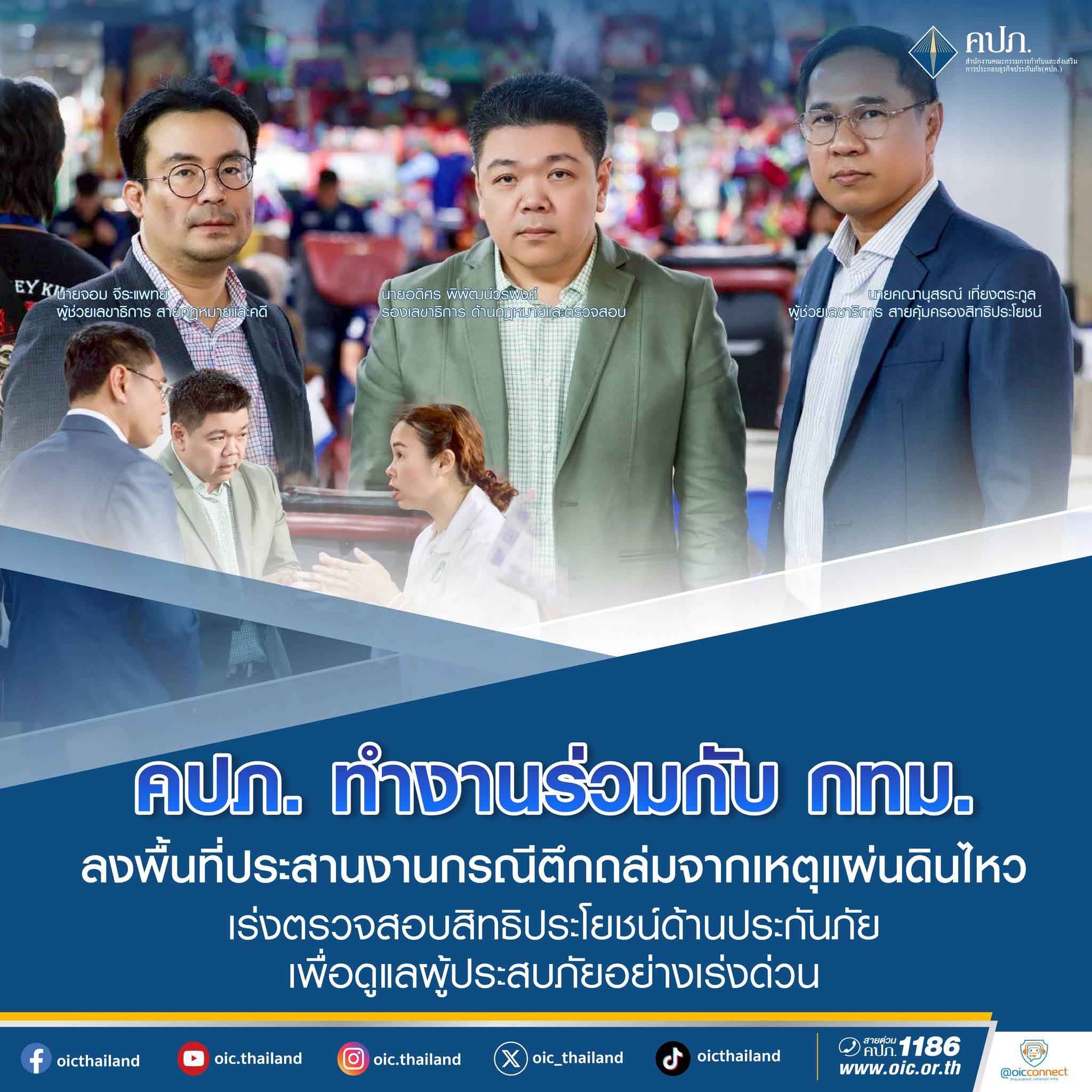 คปภ.ทำงานร่วมกทม.ลงพื้นที่ตึกถล่มจาก เหตุแผ่นดินไหวเร่งตรวจสอบสิทธิฯ
