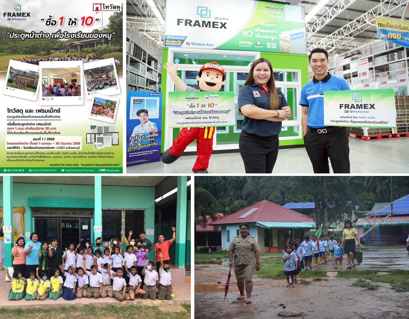ไทวัสดุ-เฟรมเม็กซ์ชูแคมเปญซื้อ1ให้10 ประตูหน้าต่างเพื่อโรงเรียนของหนู