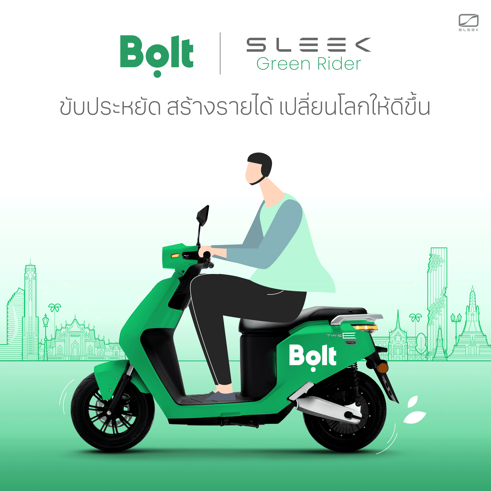 โบลท์ จับมือSLEEK EVหนุนพาร์ทเนอร์ ขับรถจยย.อีวี.ดันอุตฯRide-Hailing