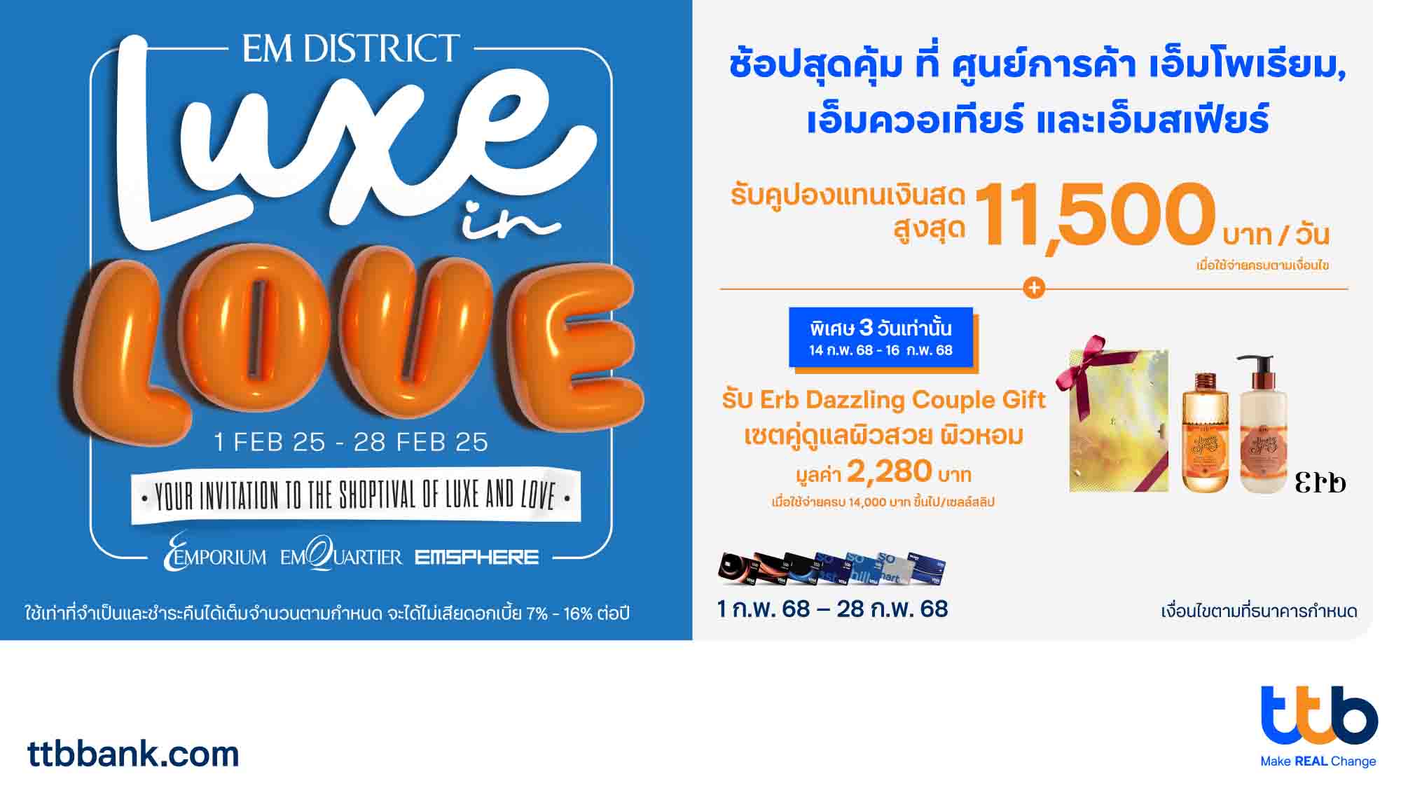 บัตรเครดิตttbจับมือ EM DISTRICT จัดแคมเปญเดือนแห่งความรักรับคูปอง