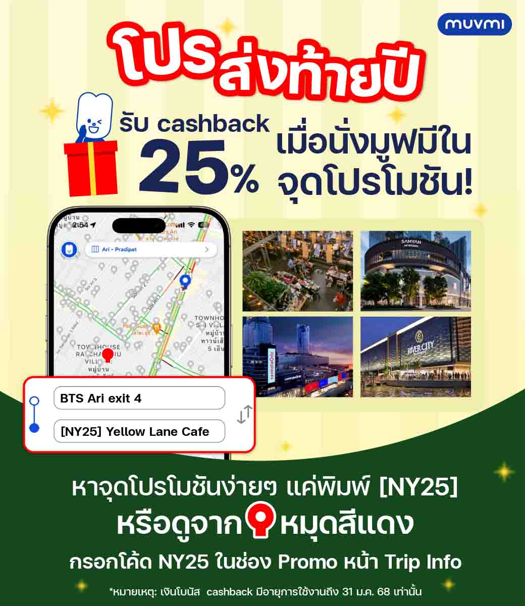'มูฟมี'ขอขอบคุณผู้โดยสารด้วยแคมเปญ รับโบนัส25%เมื่อนั่งรถในจุดโปรโมชัน