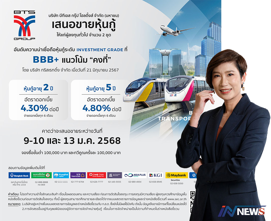 บีทีเอสกรุ๊ปฯเตรียมออกหุ้นกู้2ชุดอายุ2ปี ดอกเบี้ย4.30%ต่อปี/5ปีดอก4.80%ต่อปี