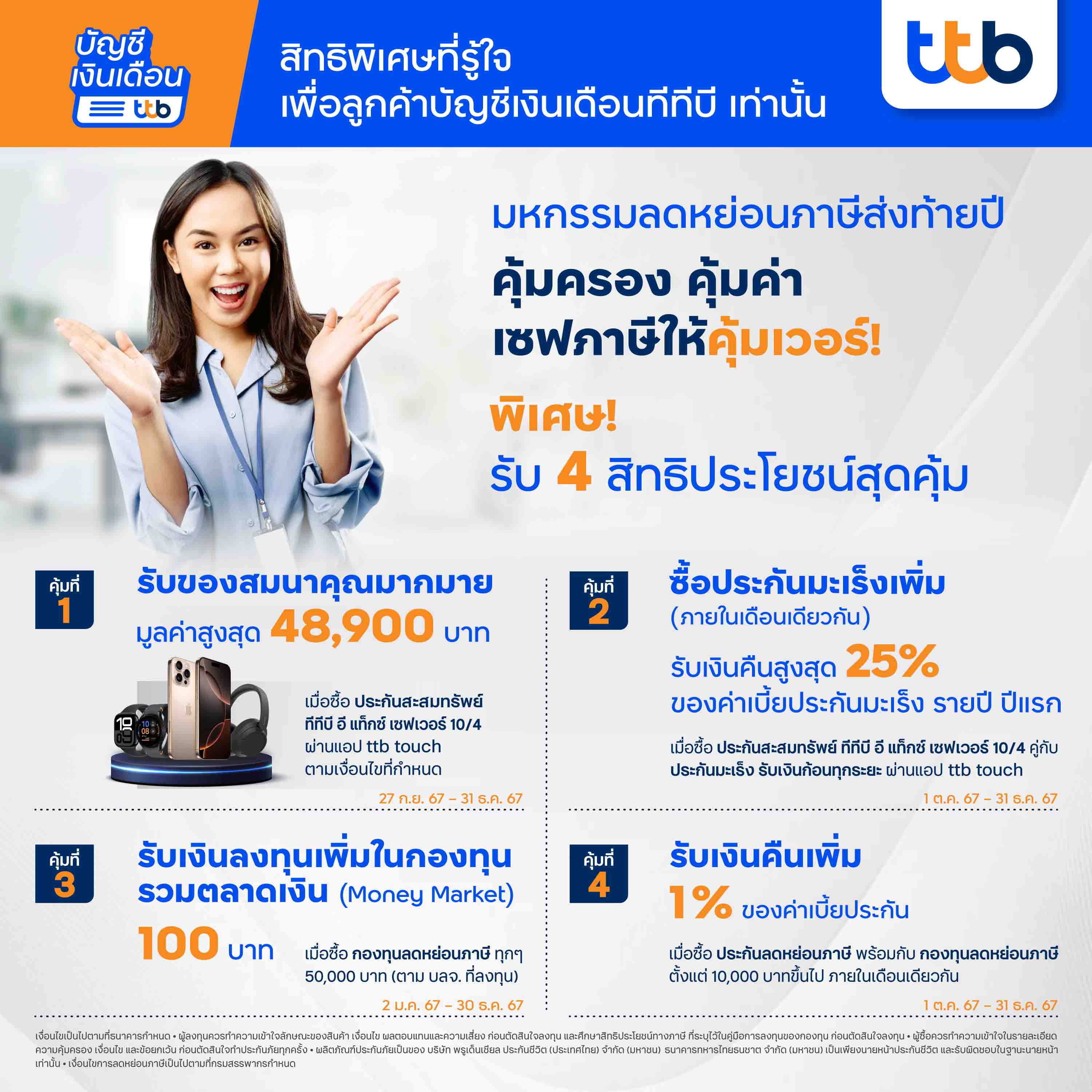 ทีทีบีชู4สิทธิประโยชน์สุดคุ้มค่าของลูกค้า บัญชีเงินเดือนเมื่อซื้อประกัน/กองทุน
