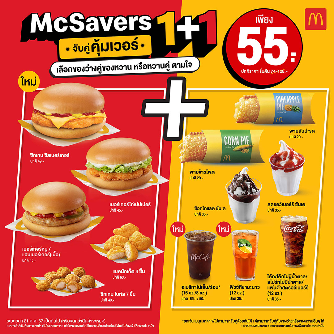 'แมคโดนัลด์'ชวนจับคู่สุดคุ้มเวอร์กับ ‘McSavers 1+1’