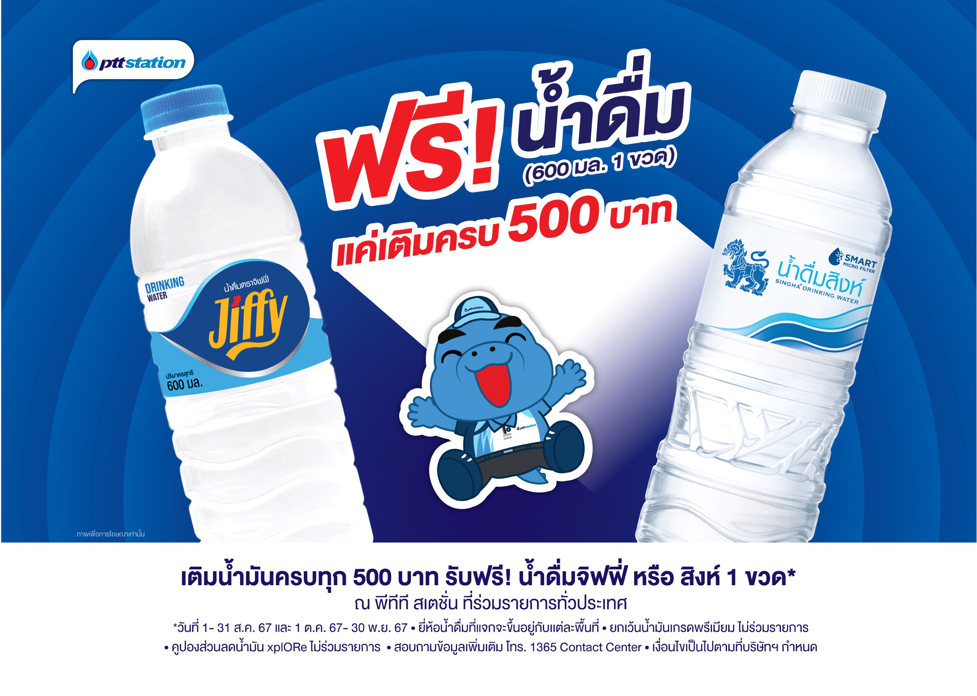 แจกความสดชื่น!ตลอดเดือนสิงหาคมนี้ เติมน้ำมันพีทีทีครบ500บ.รับฟรีน้ำดื่ม