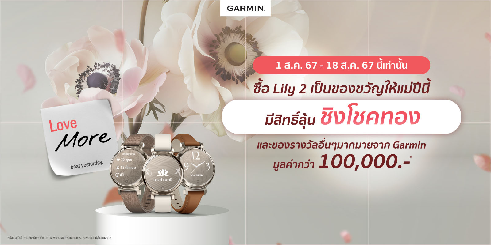 Garminชวนมอบสุขภาพดีเป็นของขวัญ วันแม่กับLILY2ซีรีย์ลุ้นเงินแสน1-18ส.ค.