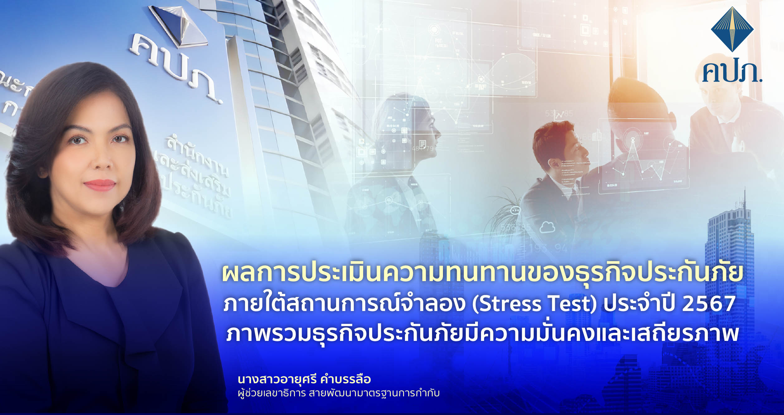 กรุงเทพฯ-ผลการประเมินความทนทานของธุรกิจประกันภัยภายใต้สถานการณ์จำลอง (Stress Test) ประจำปี 2567 ภาพรวมธุรกิจประกันภัยมีค...
