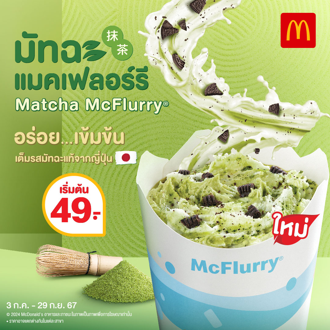'แมคโดนัลด์'ชวนอิ้มอร่อยเข้มเต็มคำ!กับ 'มัทฉะแมคเฟลอร์รี'ถึงรสมัทฉะจากญี่ปุ่น