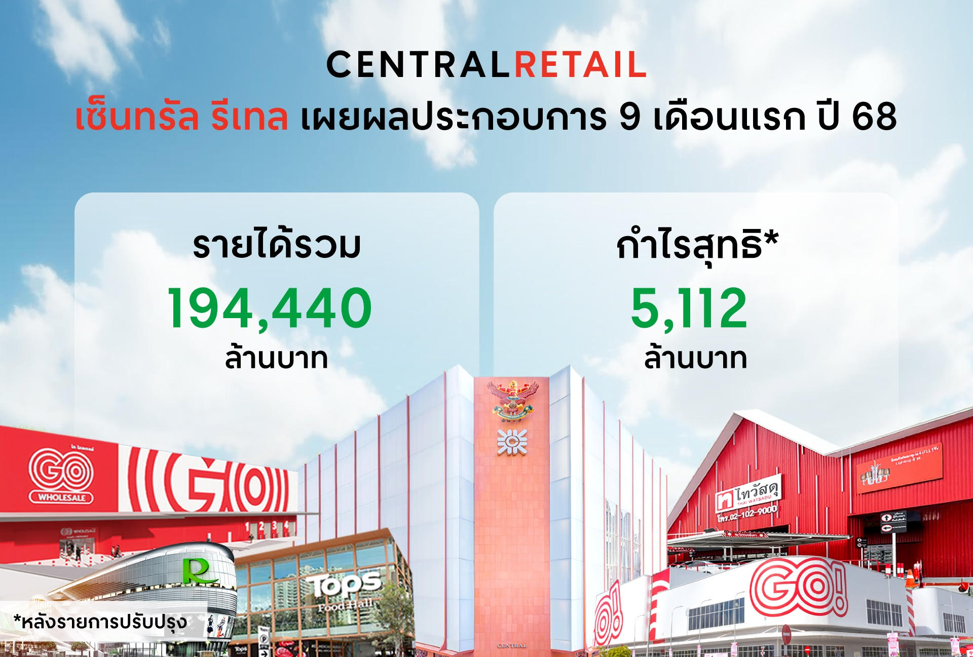 'เซ็นทรัล รีเทล'โชว์ผลงาน9เดือนแรกใน ปี68กวาดรายได้รวมกว่า1.94แสนลบ.