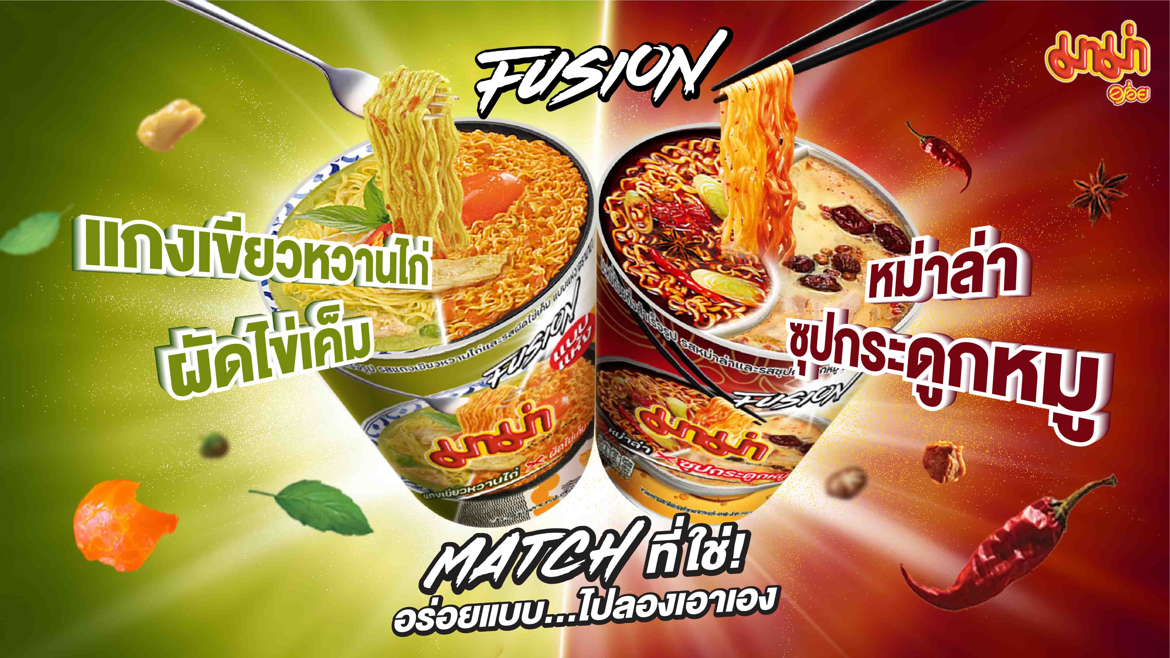 กรุงเทพฯ-มาม่า กลับมาตอกย้ำความอร่อยแมทช์อีกครั้งกับซีรี่ย์ฟิวชั่น ที่ผสมผสาน 2 รสชาติเด็ดในถ้วยเดียวกับ “รสแกงเขี...