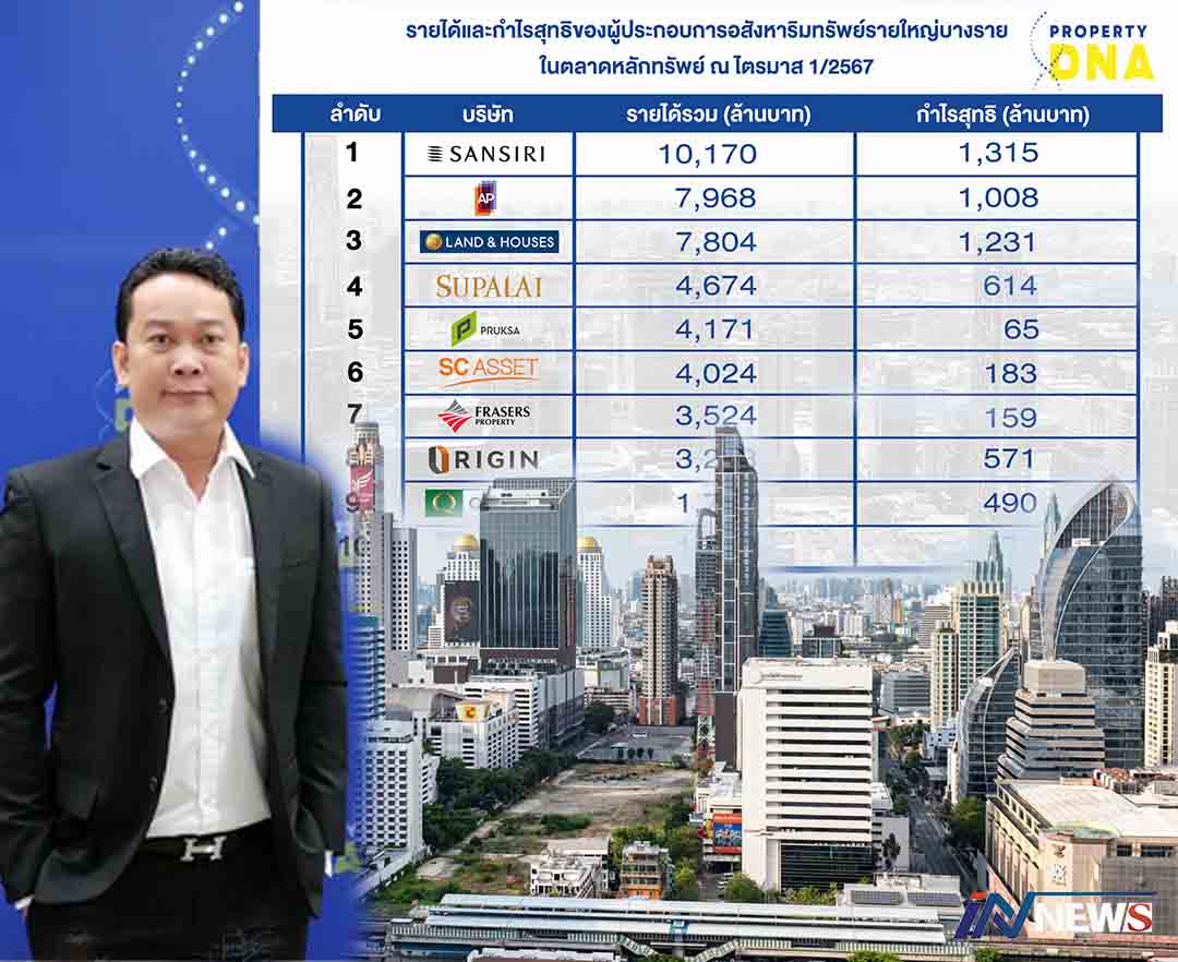 พลัส พร็อพเพอร์ตี้เทียบฟอร์มอสังหาฯ 10บิ๊กแบรนด์เปิดรายได้-กำไรQ1/67