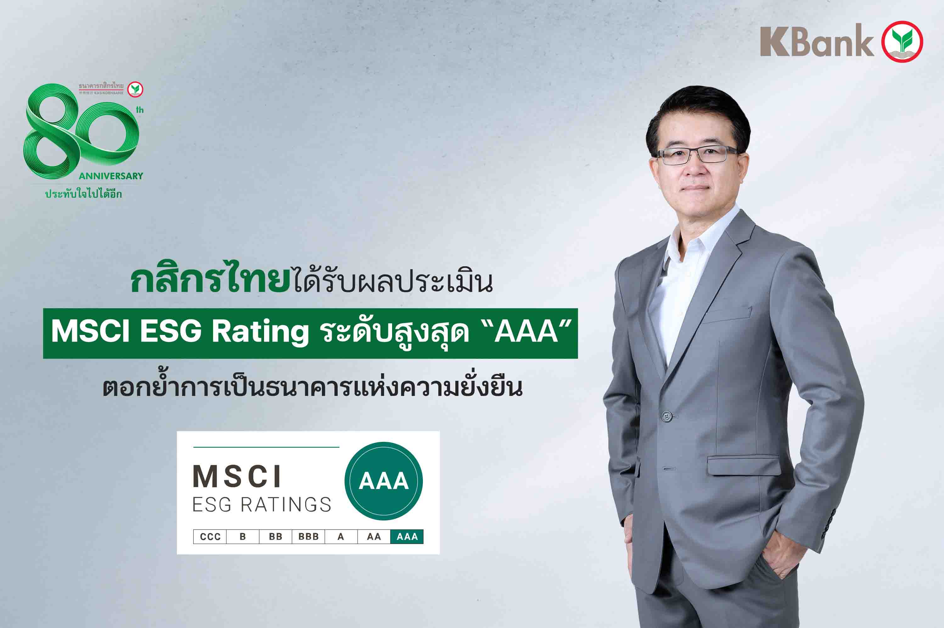 กสิกรไทยได้รับประเมินเป็นแบงค์ยั่งยืน MSCI ESG RatingระดับสูงสุดAAA