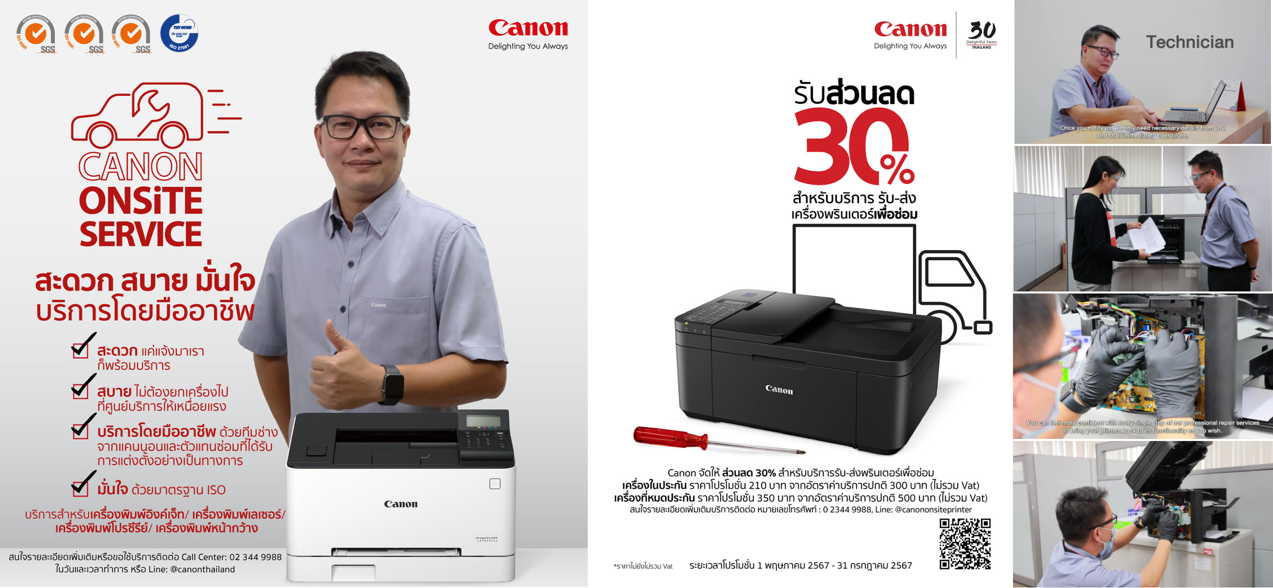 แดดร้อนส่งศูนย์ซ่อมไม่ไหว แคนนอนจัดให้!จัดโปรโมชันส่วนลด 30% บริการซ่อมพรินเตอร์ทั้งแบบ Delivery และ Onsiteตั้งแต่ 1 พฤษ...