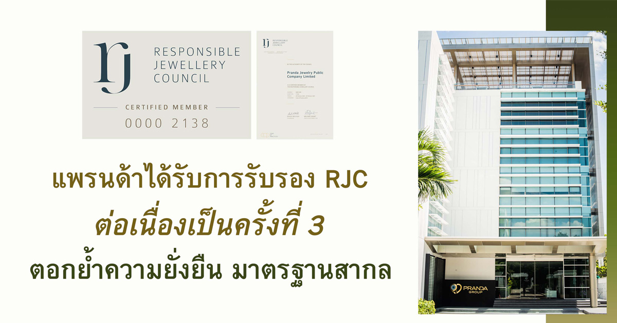 แพรนด้าได้รับการรับรองRJCต่อเป็นครั้ง3 ตอกย้ำความยั่งยืนมาตรฐานสากล