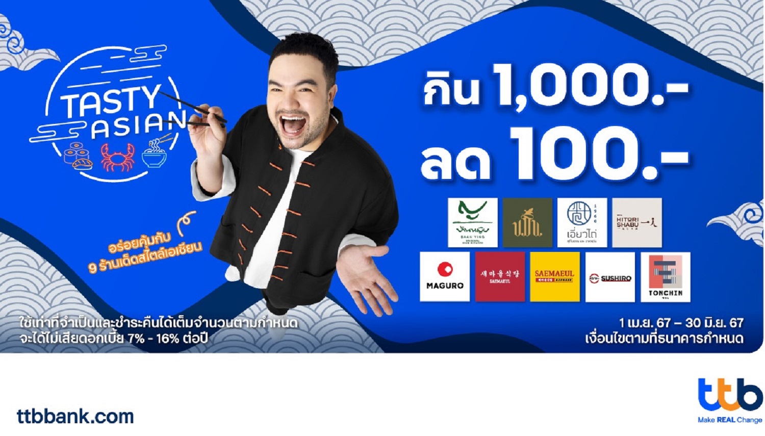 บัตรเครดิตttbชวนมาอิ่มคุ้มกินพันลดร้อย แคมเปญTasty Asianกับ9ร้านดัง