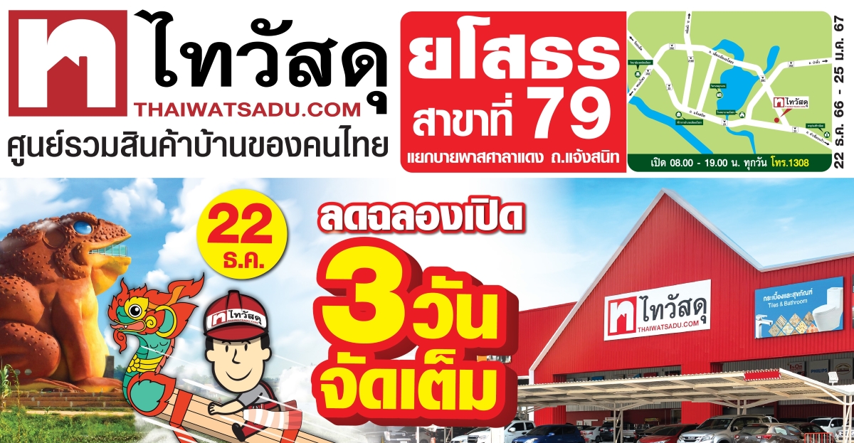 ฉลองสาขาใหม่!ไทวัสดุเปิดสาขายโสธร ลุ้นรับคูปองส่วนลด500บาทจัดเต็ม3วัน