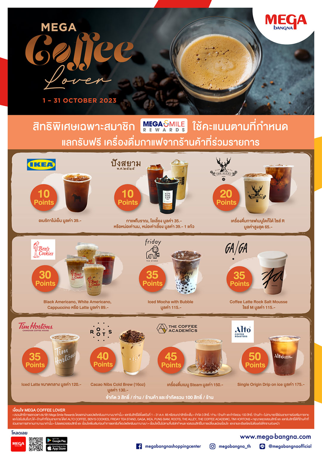 กรุงเทพฯ-ศูนย์การค้าเมกาบางนาพร้อมเสิร์ฟความพิเศษเฉพาะสมาชิก MEGA SMILE REWARDSกับแคมเปญMEGA COFFEE LOVER ให้คนรักกาแฟได...