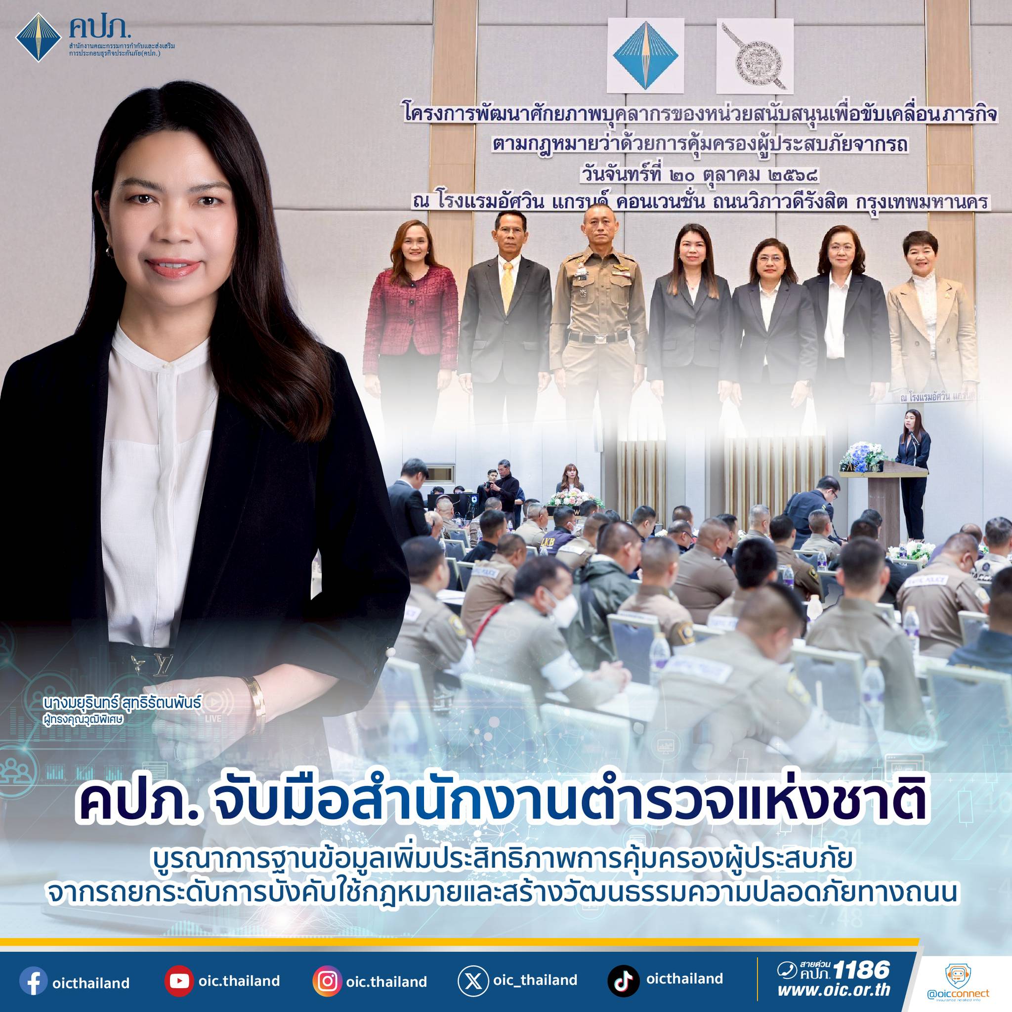 กรุงเทพฯ-คปภ. จับมือสำนักงานตำรวจแห่งชาติ บูรณาการฐานข้อมูลเพิ่มประสิทธิภาพการคุ้มครองผู้ประสบภัยจากรถยกระดับการบังคับใช...