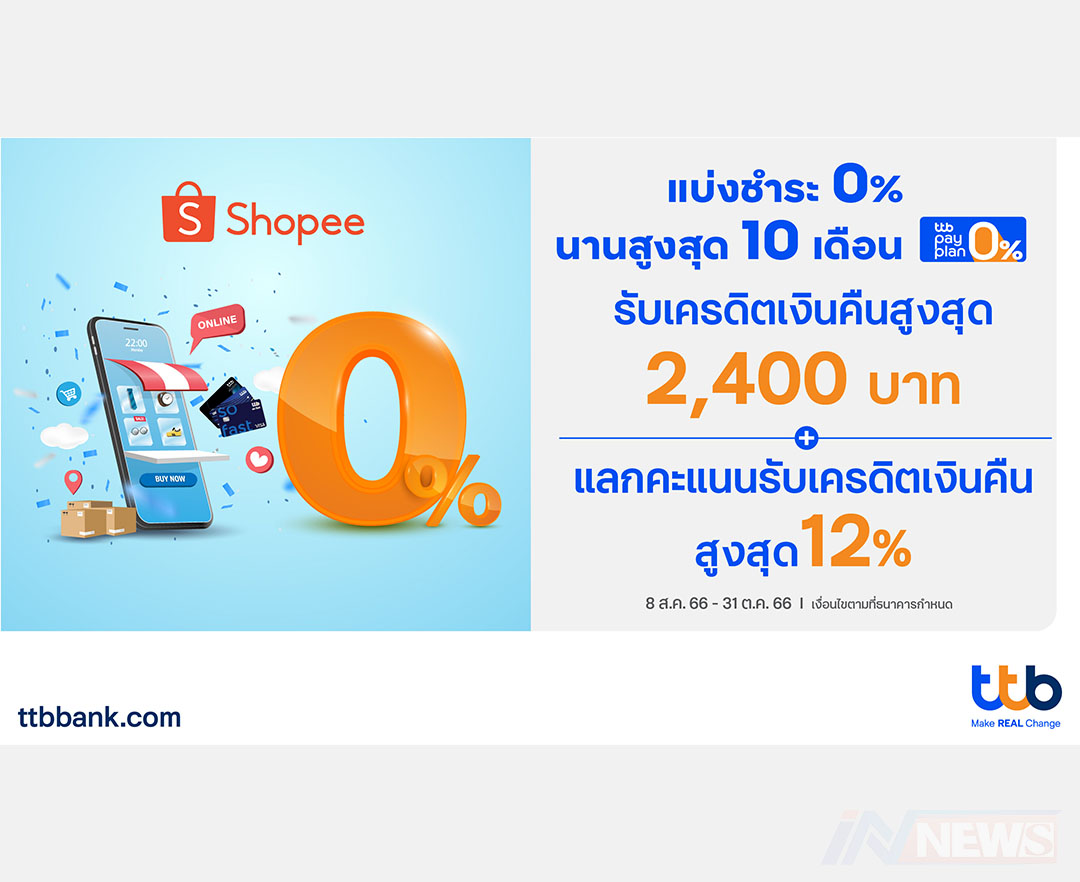 ทีทีบี-ช้อปปี้เปิดบริการผ่อนชำระสบายๆ ด้วยบัตรเครดิต ttbดอกเบี้ย0%10เดือน