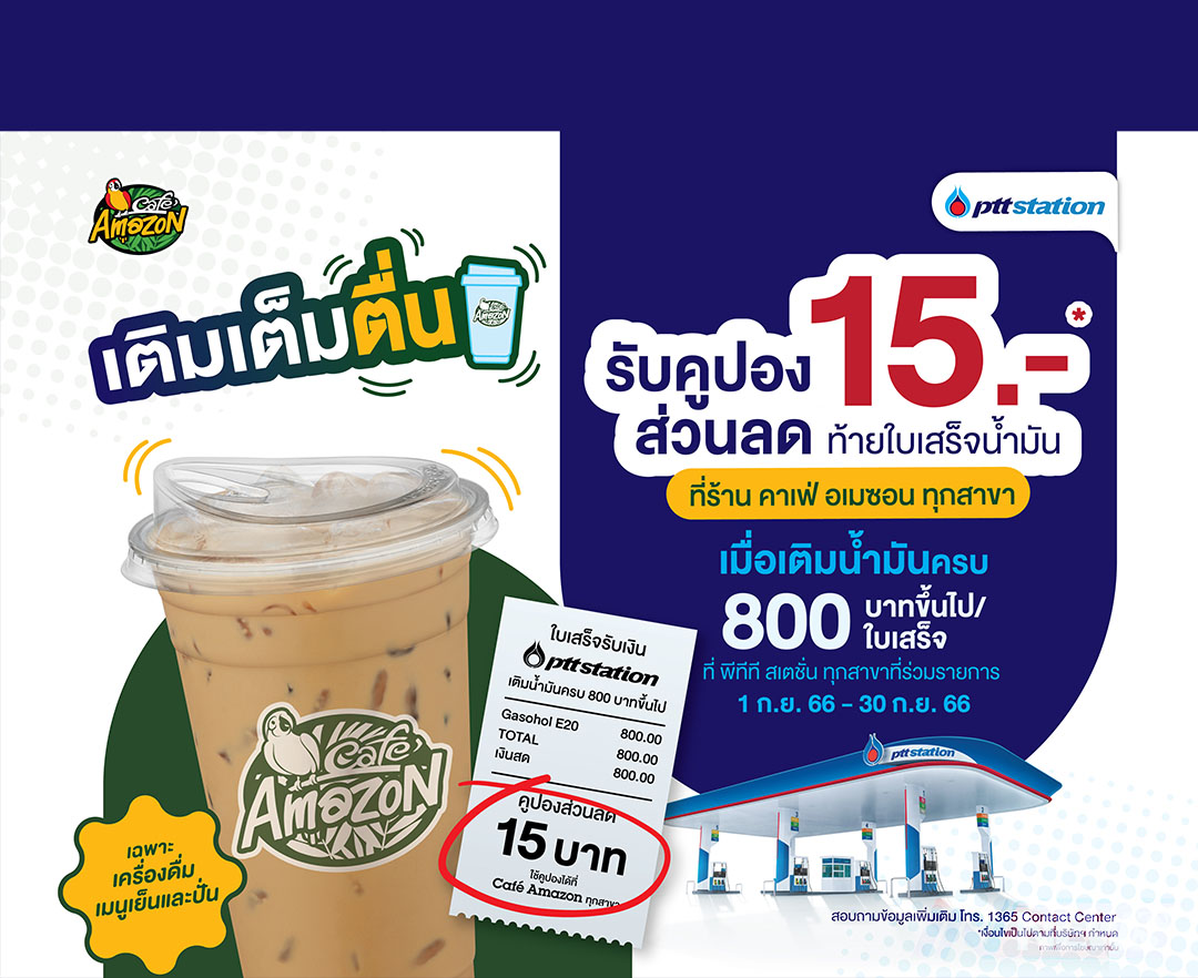 'พีทีที สเตชั่น'มอบโปรฯรับกับความสดชื่น 'เติมน้ำมัน800คาเฟ่อเมซอนลด15บาท