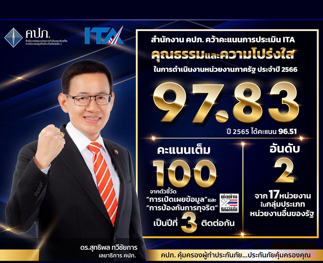 คปภ.ได้คะแนนประเมินITAปี66เต็ม100 3ปีติดต่อกันจากตัวชี้วัด'การเปิดเผยข้อมูล'