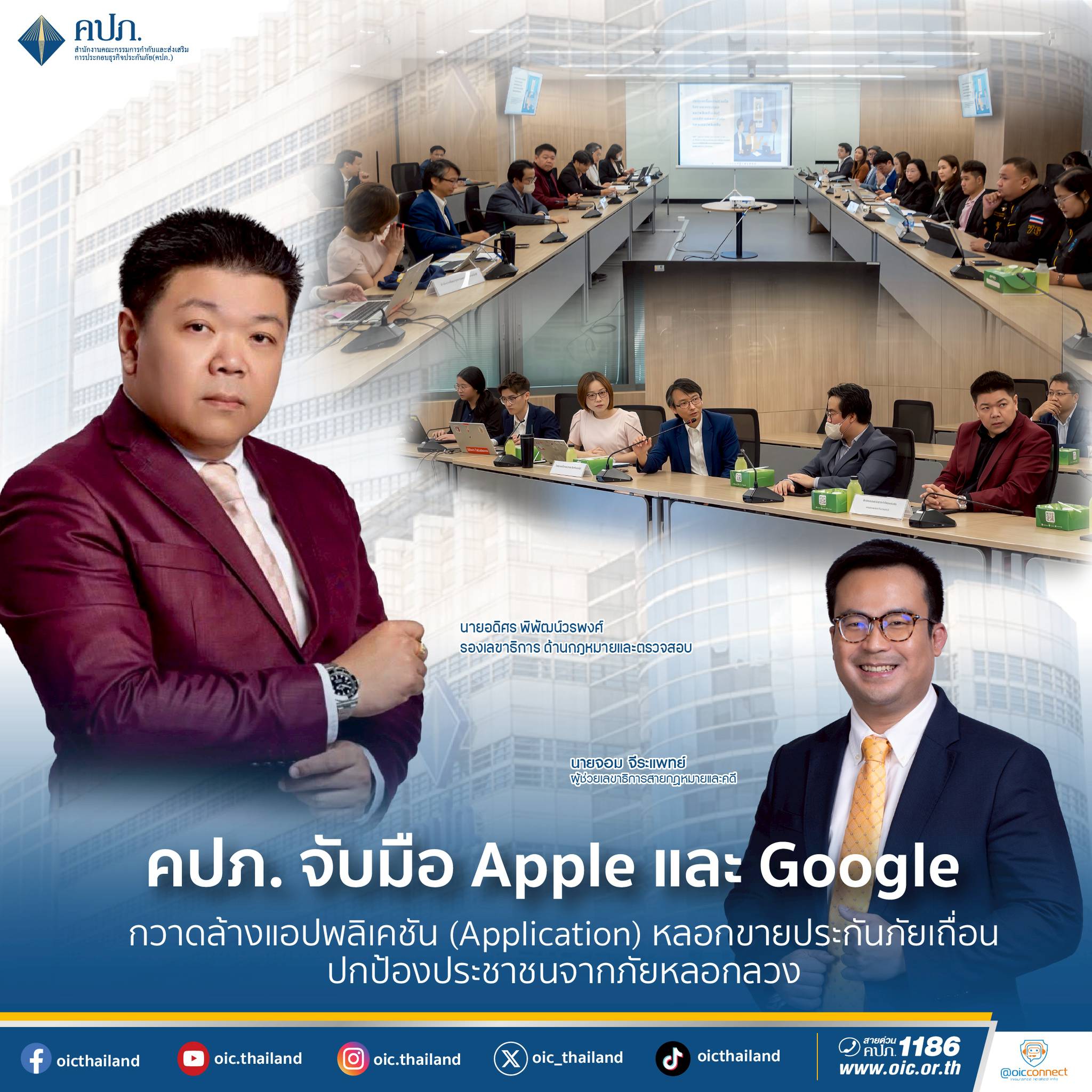 กรุงเทพฯ-คปภ. จับมือ Apple และ Googleกวาดล้างแอปพลิเคชัน (Application) หลอกขายประกันภัยเถื่อน ปกป้องประชาชนจากภัยหลอกลวง...