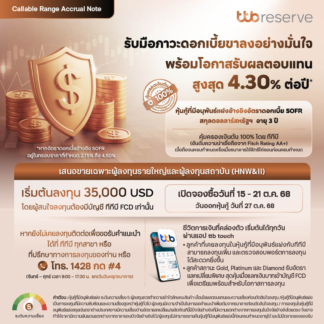 กรุงเทพฯ, 15 ตุลาคม 2568 - ทีเอ็มบีธนชาต หรือ ทีทีบี เดินหน้าพัฒนาและยกระดับบริการด้านการล...