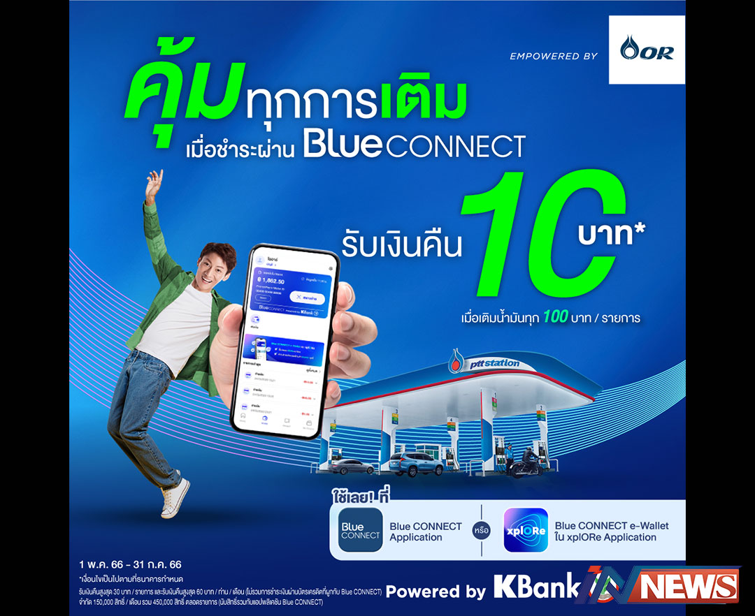 เติมน้ำมันที่พีทีทีสเตชั่นวันนี้ชำระผ่าน Blue Connectทุก100บ.รับเงินคืน10บ.