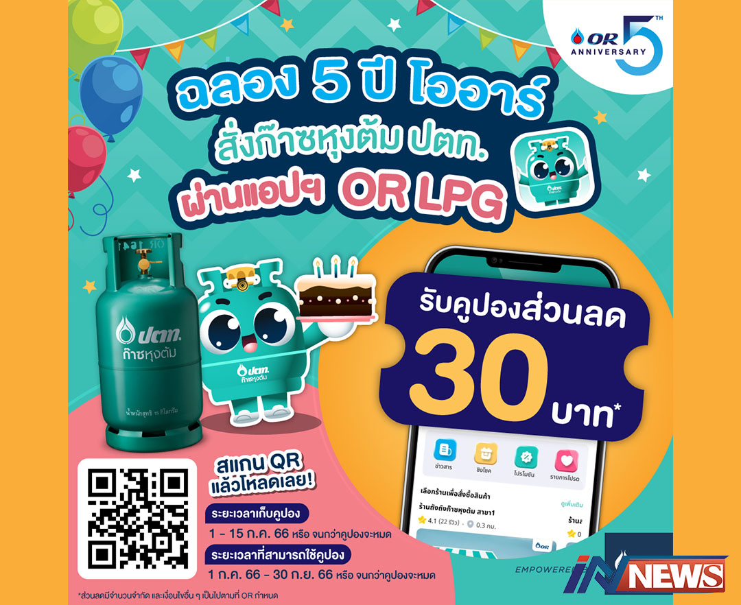 ฉลอง5ปีORสั่งก๊าซหุงต้มปตท.ผ่านแอป OR LPGวันนี้รับคูปองส่วนลด30บาท