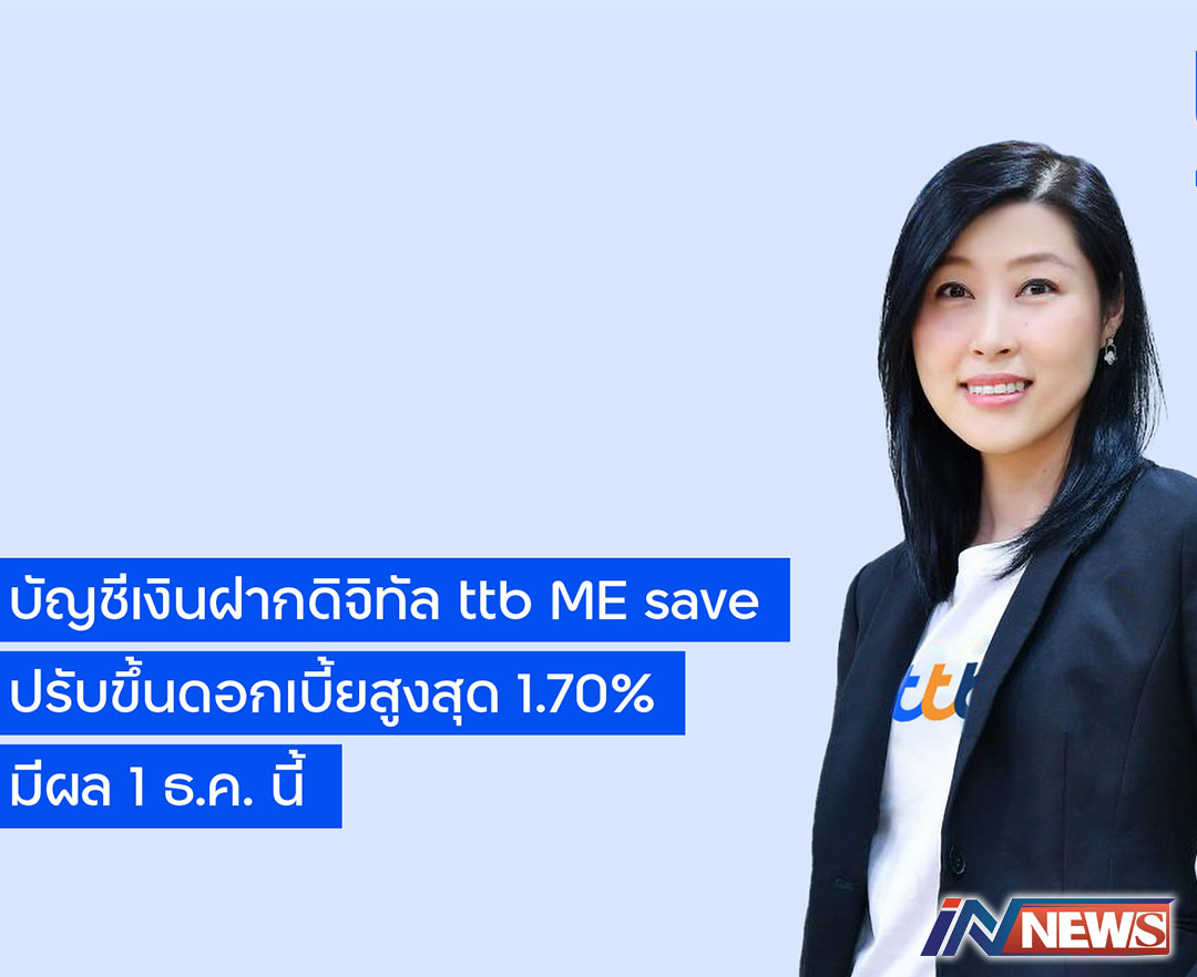 ทีเอ็มบีธนชาตปรับอัตราดอกเบี้ยเงินฝาก บัญชีทีทีบีมีเซฟ1.70%ต่อปีมีผล1ธ.ค.นี้